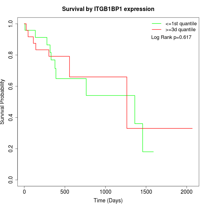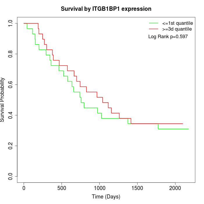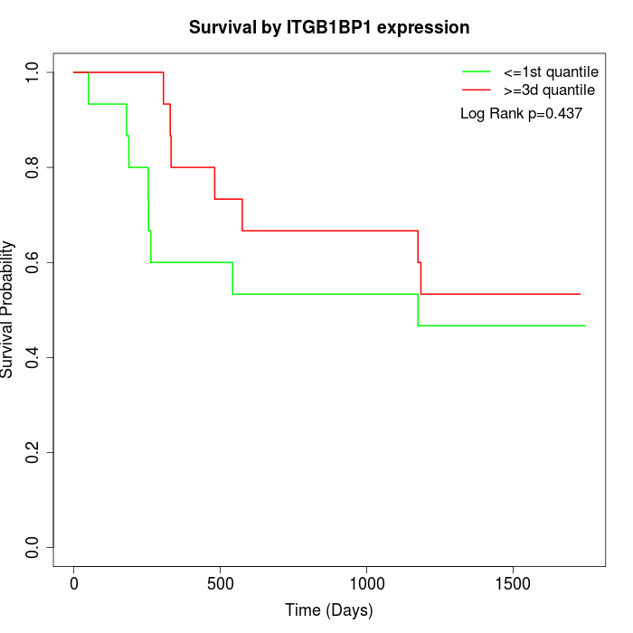 Survival by ITGB1BP1 expression: