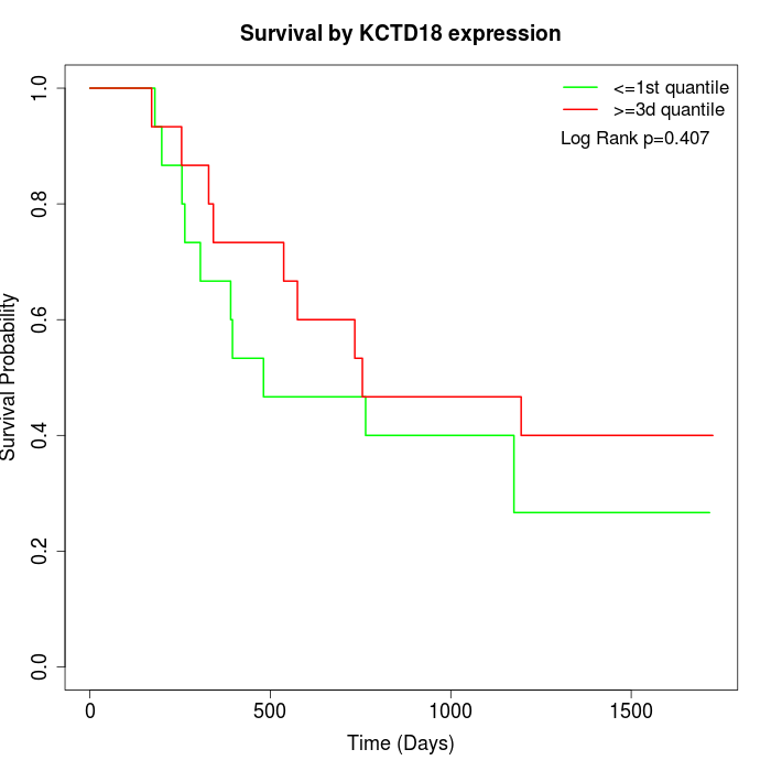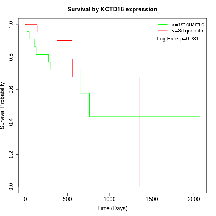 Survival by KCTD18 expression: