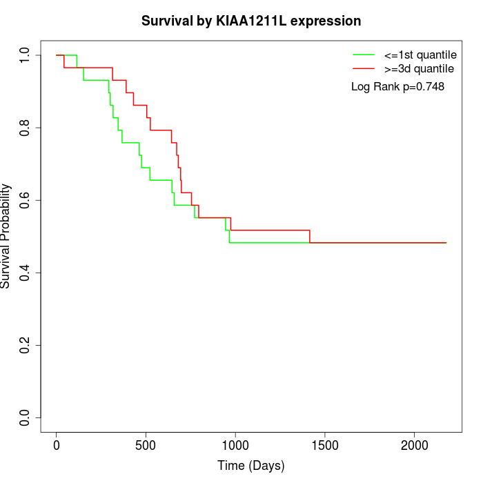 Survival by KIAA1211L expression: