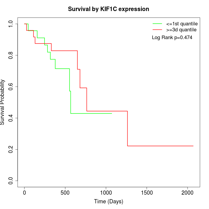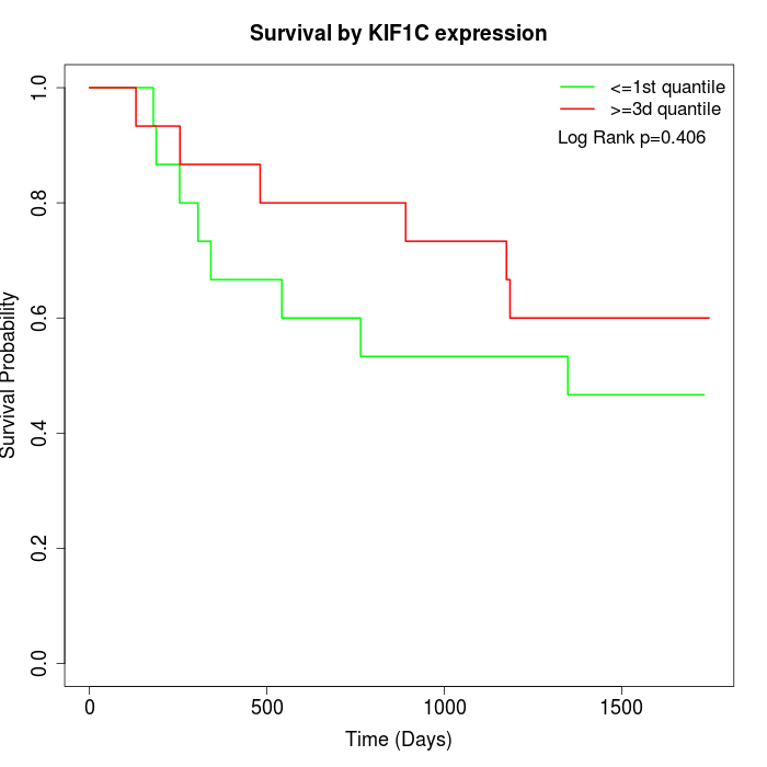 Survival by KIF1C expression: