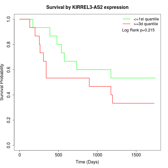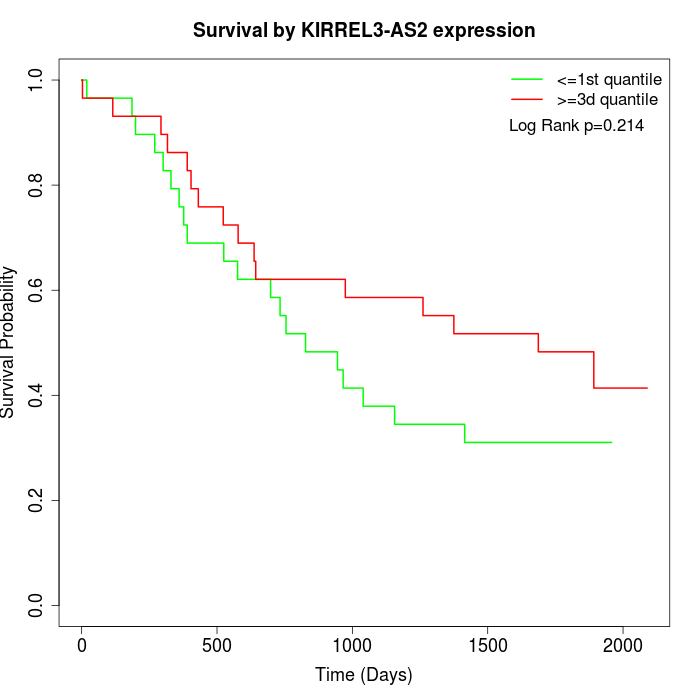 Survival by KIRREL3-AS2 expression: