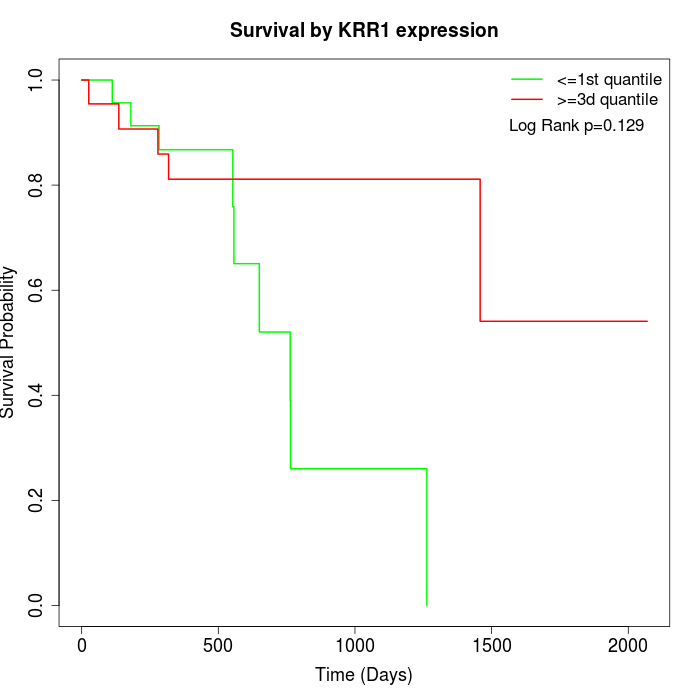 Survival by KRR1 expression: