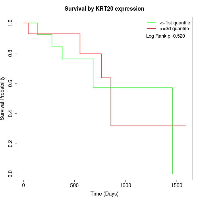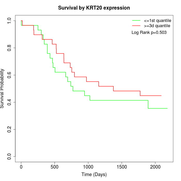 GSE53622 | KRT20 | 54474 | 5839 | -0.0736 | 0.8490 | |