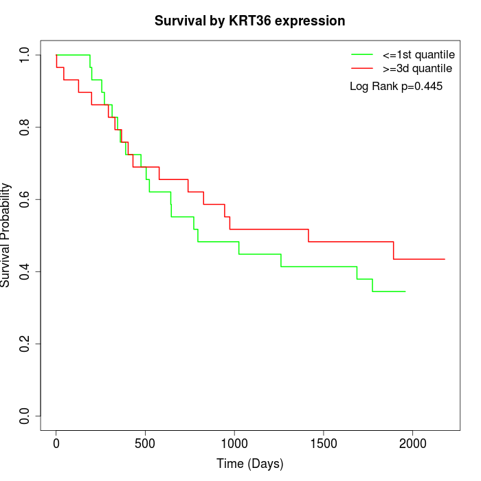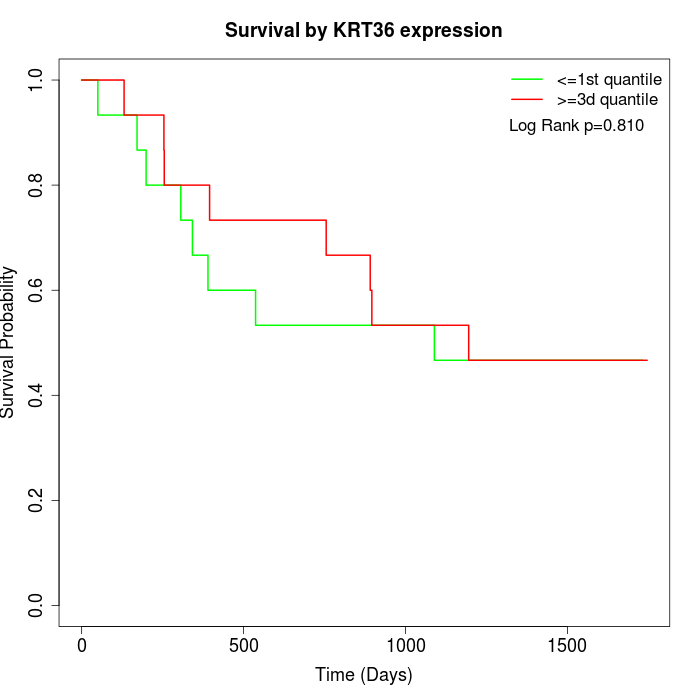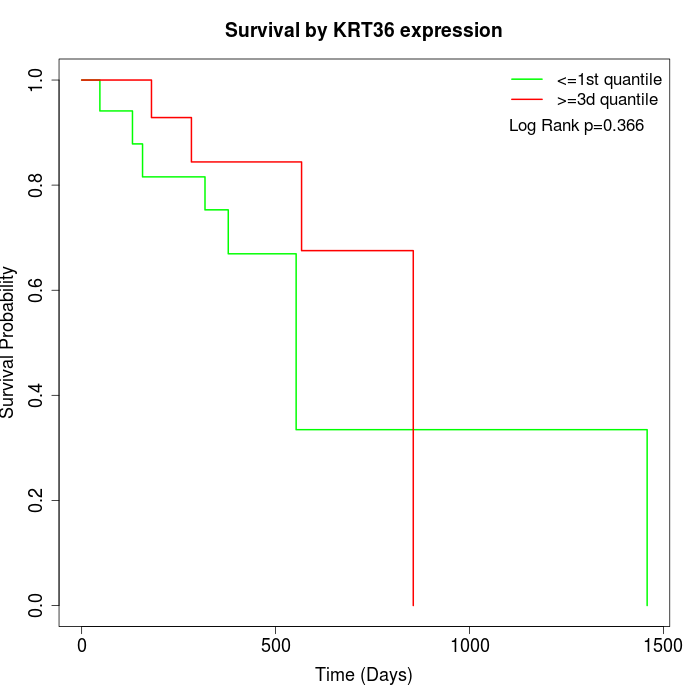 Survival by KRT36 expression: