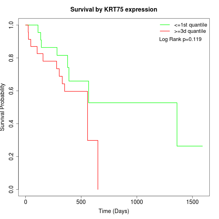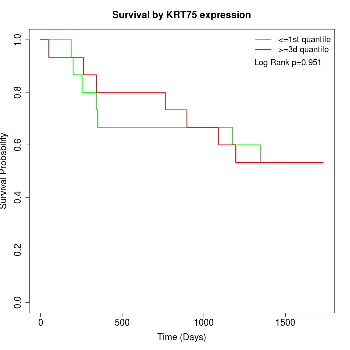 Survival by KRT75 expression: