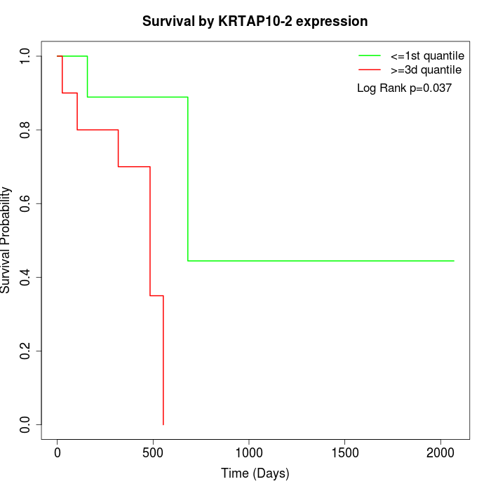 Survival by KRTAP10-2 expression: