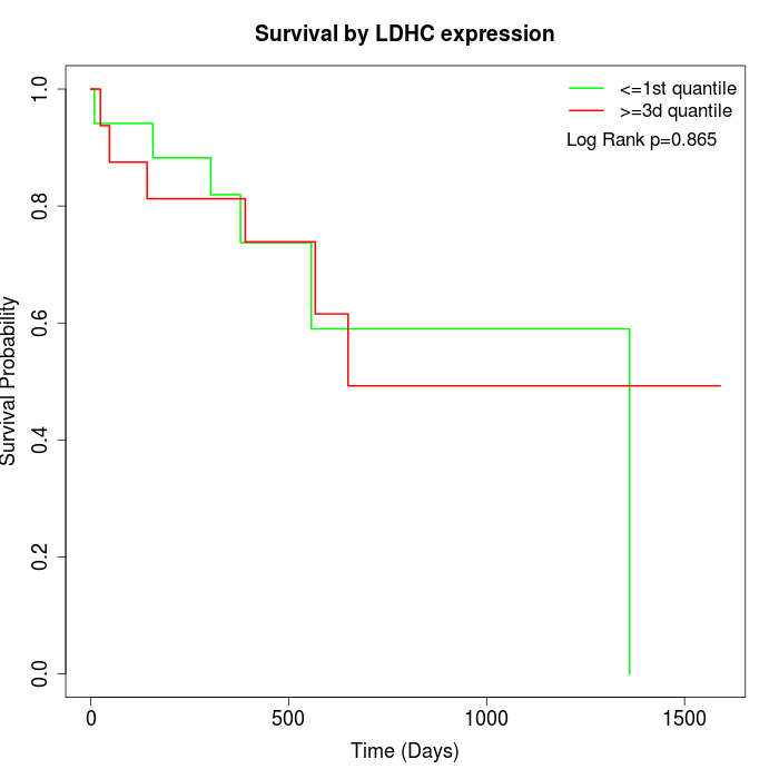 Survival by LDHC expression: