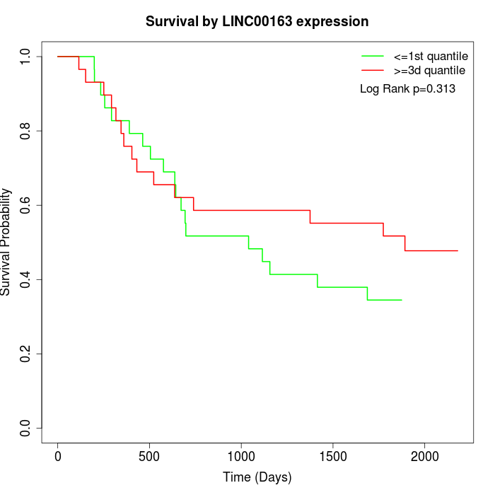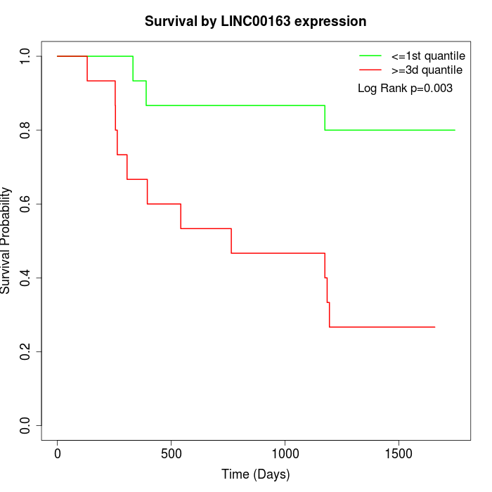Survival by LINC00163 expression: