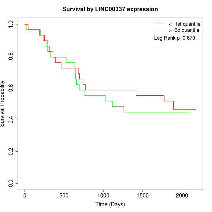 Survival by LINC00337 expression:
