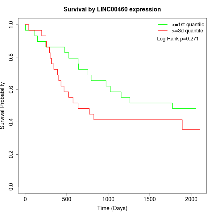 Survival by LINC00460 expression: