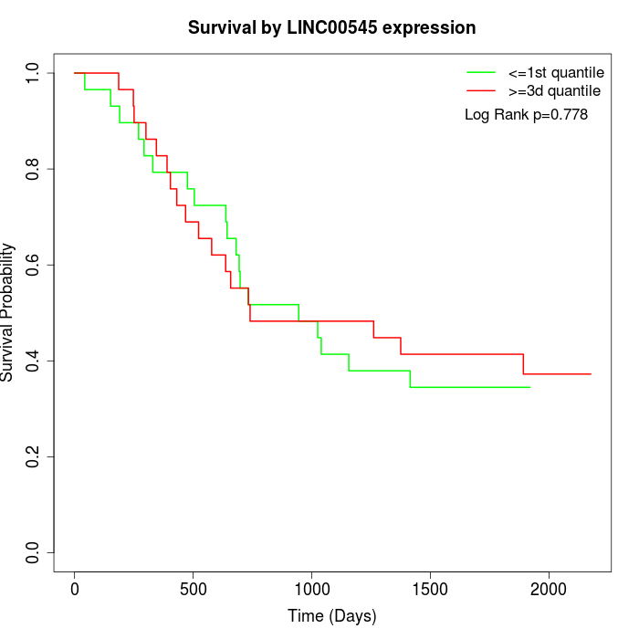 Survival by LINC00545 expression: