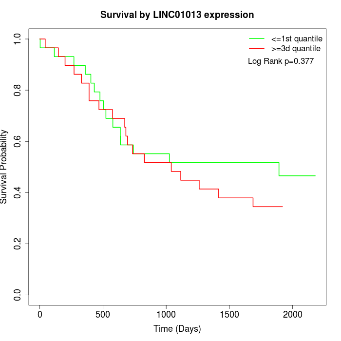 Survival by LINC01013 expression: