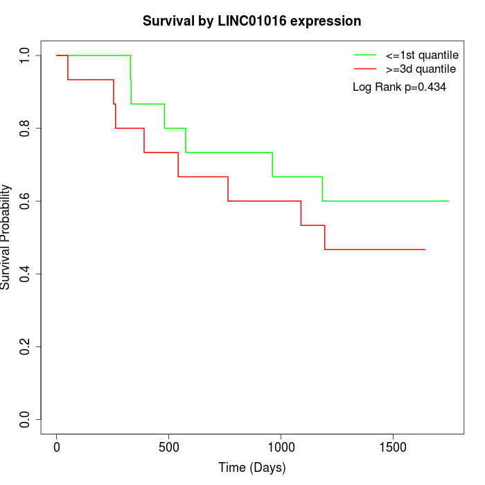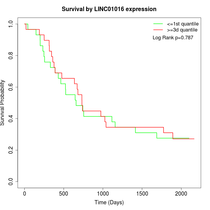 Survival by LINC01016 expression:
