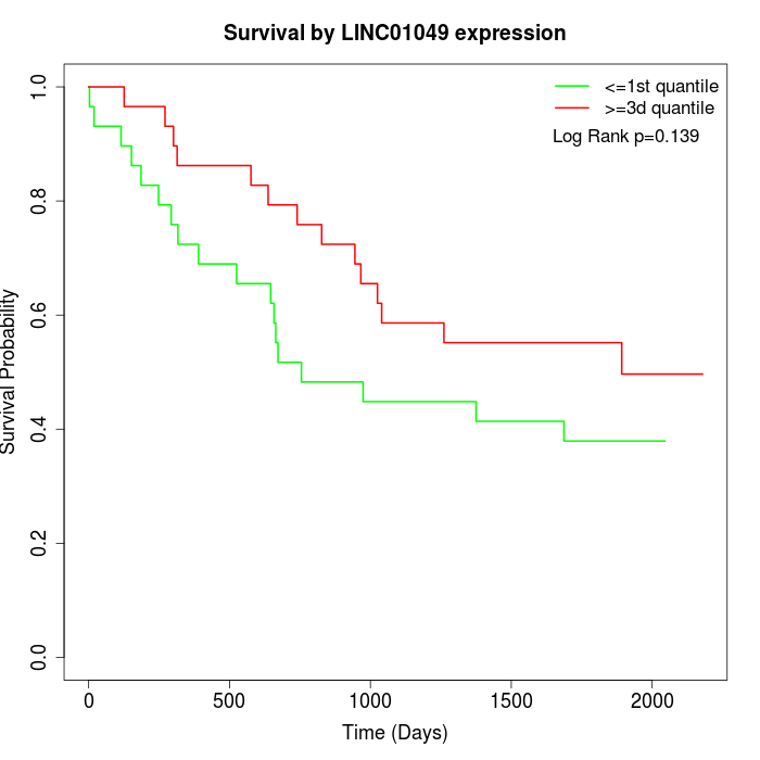 Survival by LINC01049 expression: