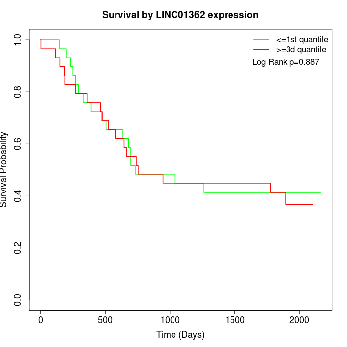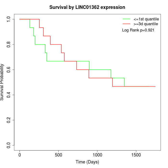 Survival by LINC01362 expression: