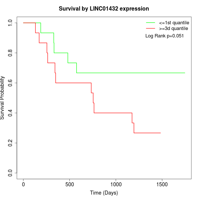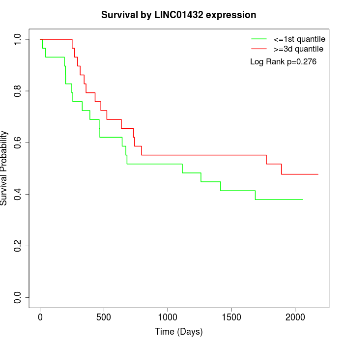 Survival by LINC01432 expression: