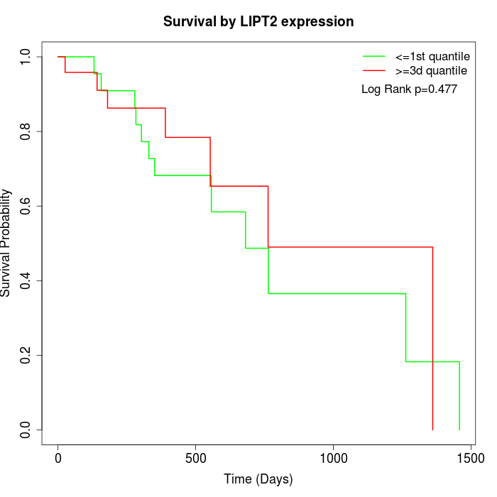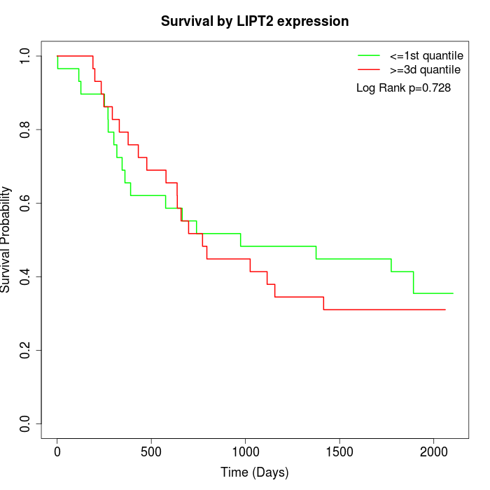 Survival by LIPT2 expression: