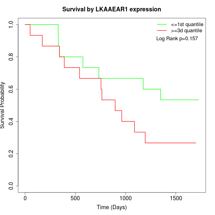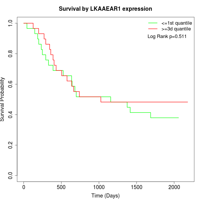 Survival by LKAAEAR1 expression: