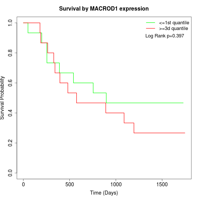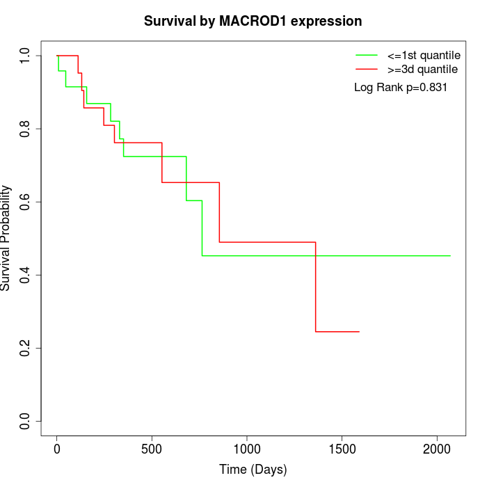 Survival by MACROD1 expression: