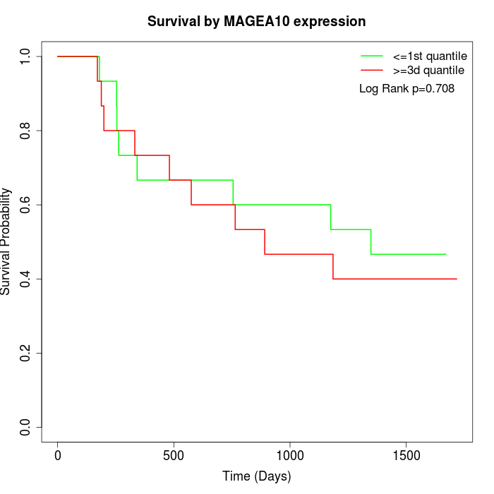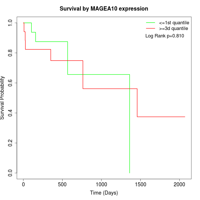 Survival by MAGEA10 expression: