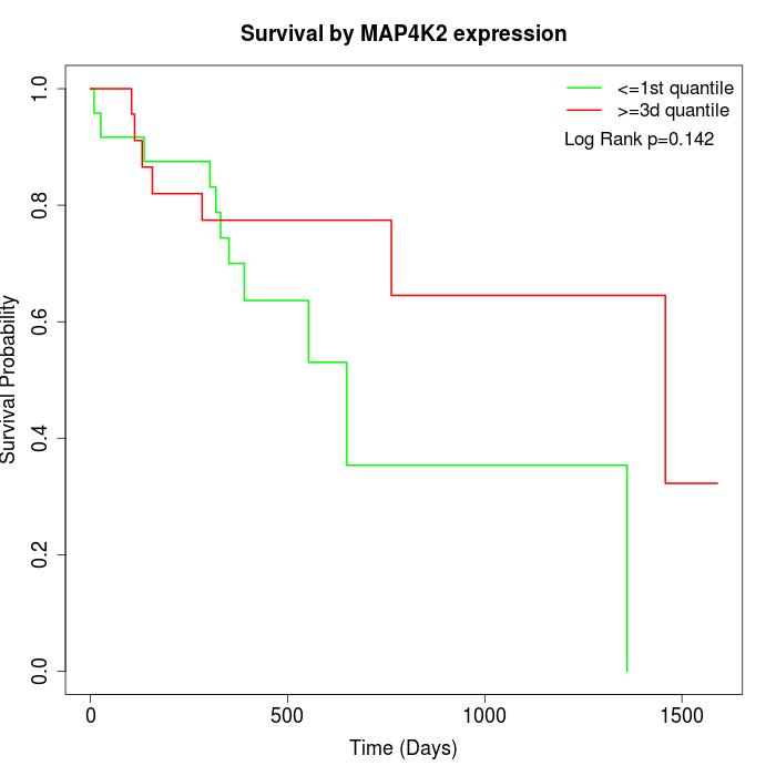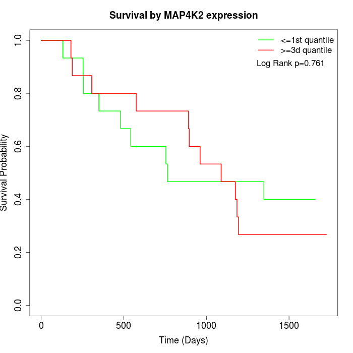 Survival by MAP4K2 expression: