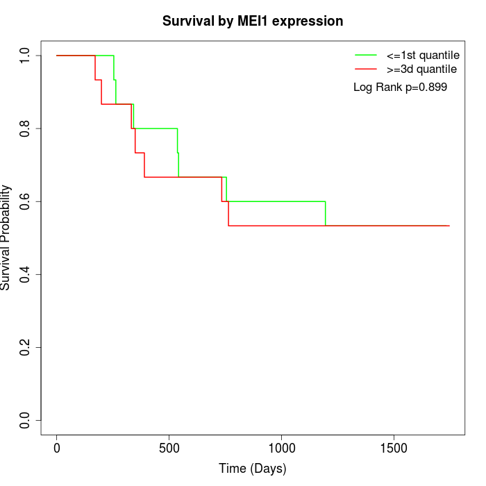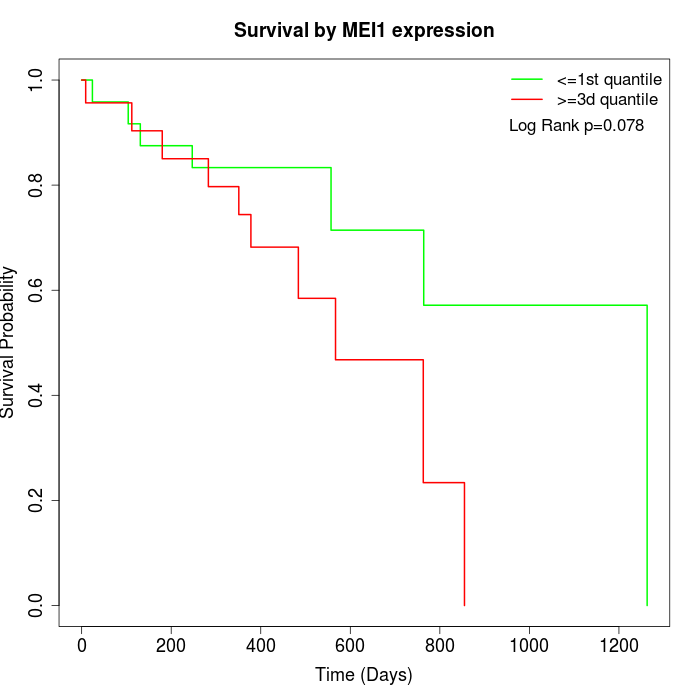 Survival by MEI1 expression: