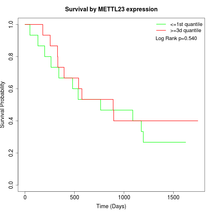Survival by METTL23 expression: