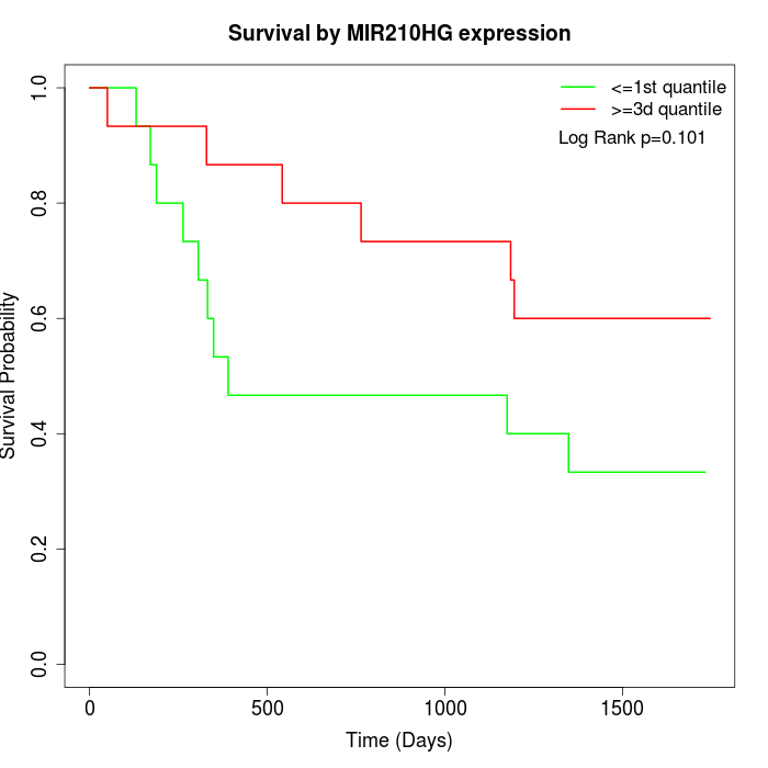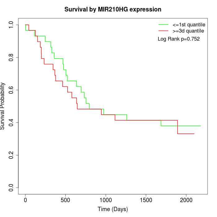 Survival by MIR210HG expression: