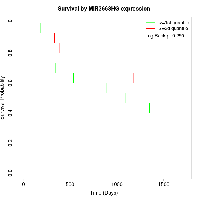 Survival by MIR3663HG expression: