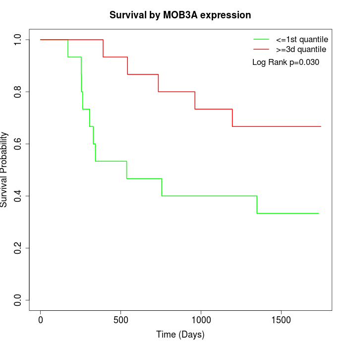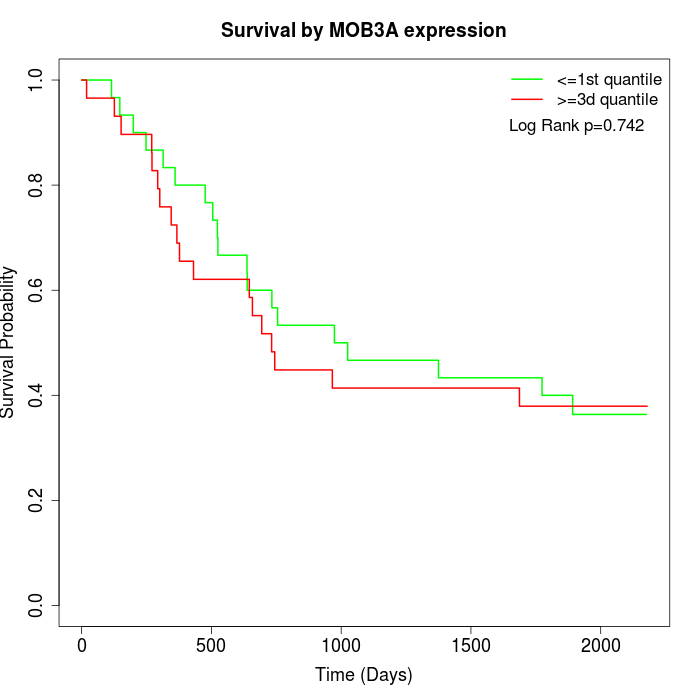 Survival by MOB3A expression: