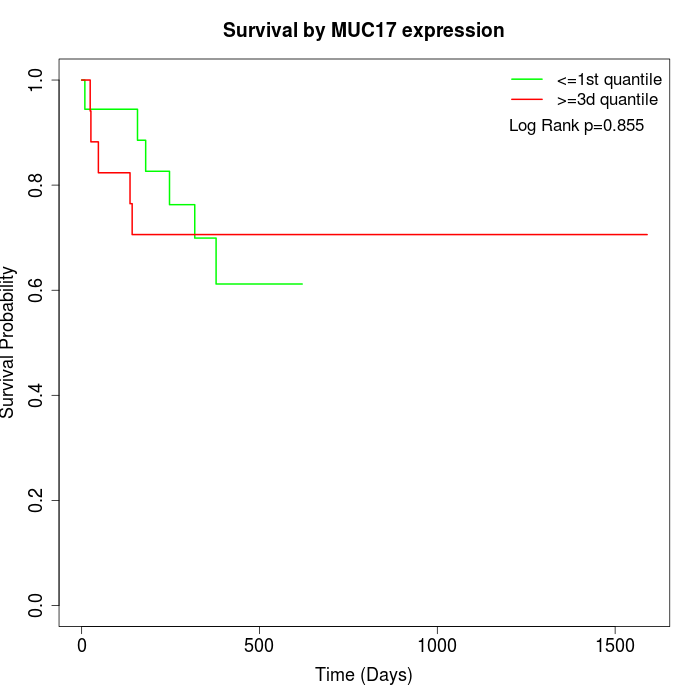 TCGA | MUC17 | 140453 | RNAseq | -1.3873 | 0.0867 |
