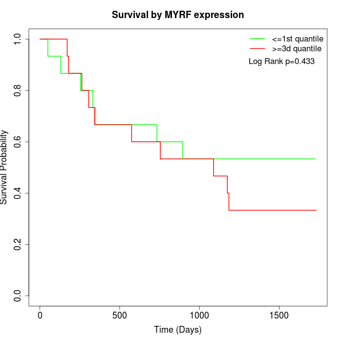 Survival by MYRF expression: