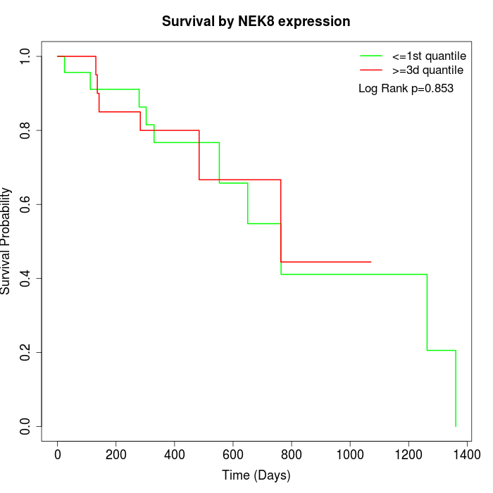 Survival by NEK8 expression: