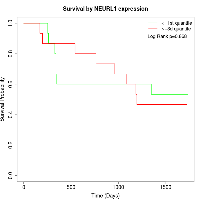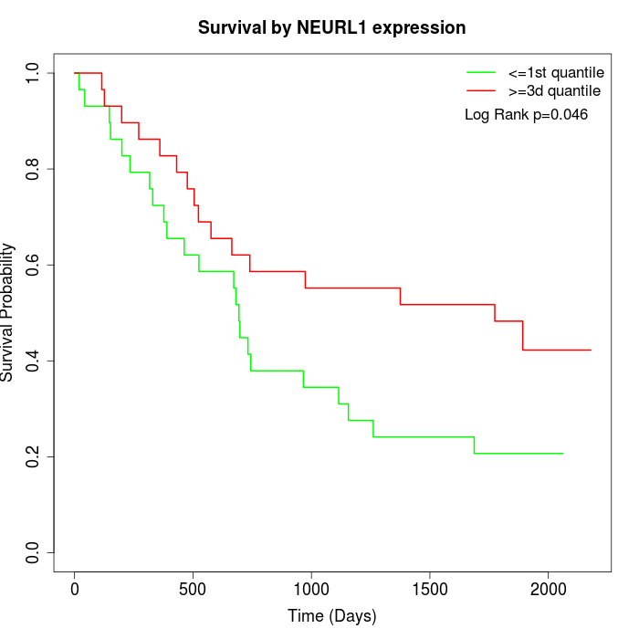 Survival by NEURL1 expression: