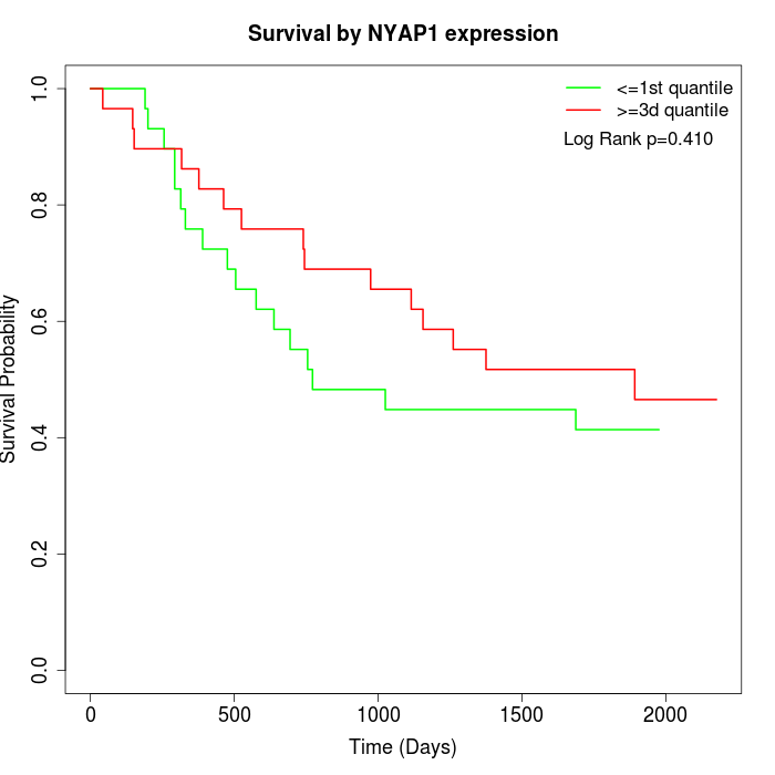 Survival by NYAP1 expression: