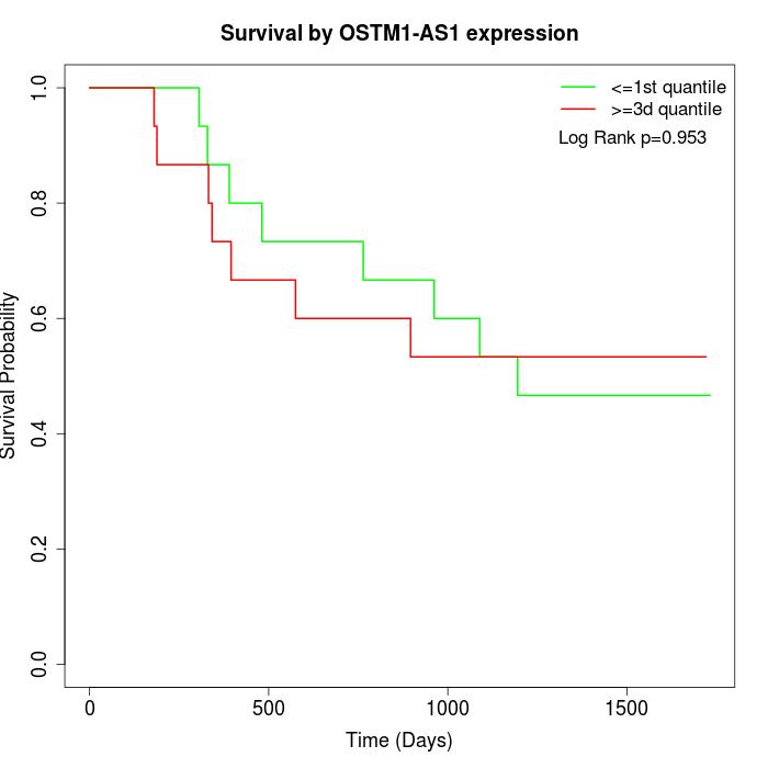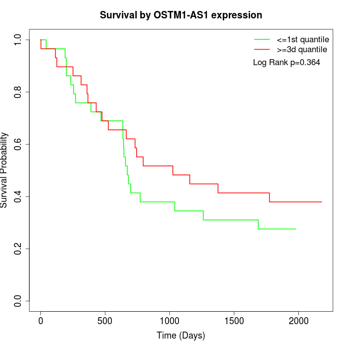 Survival by OSTM1-AS1 expression: