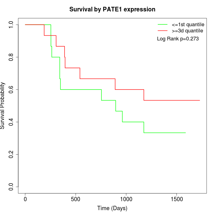 Survival by PATE1 expression: