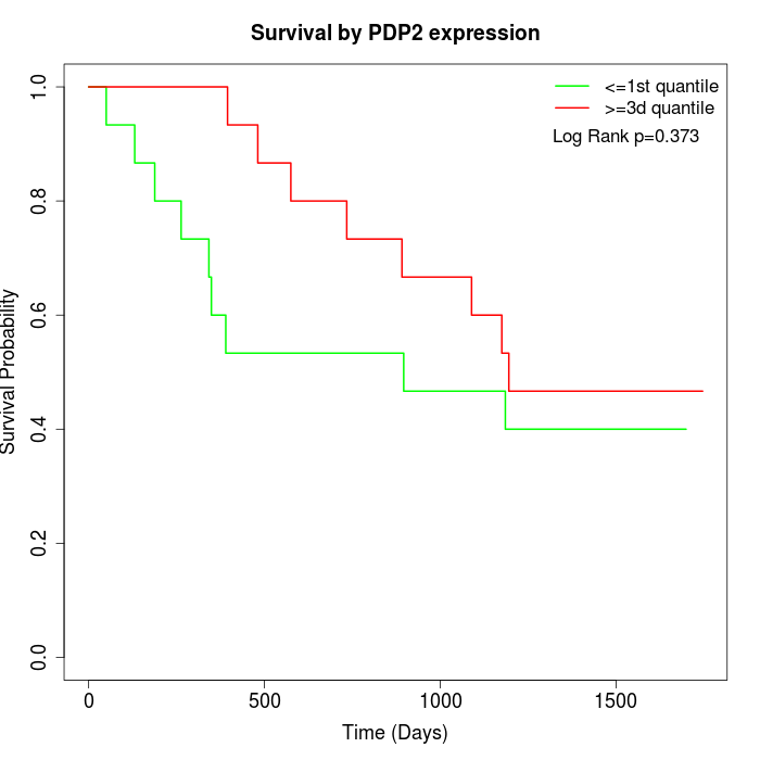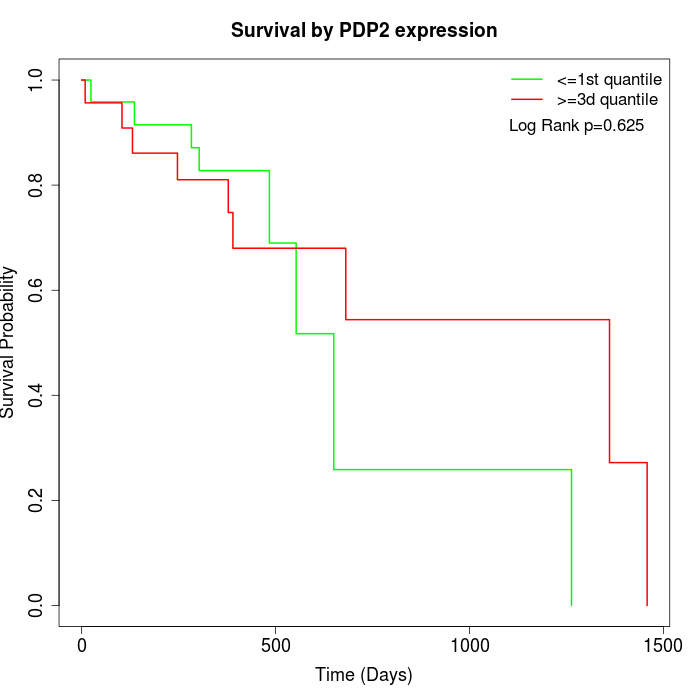 Survival by PDP2 expression: