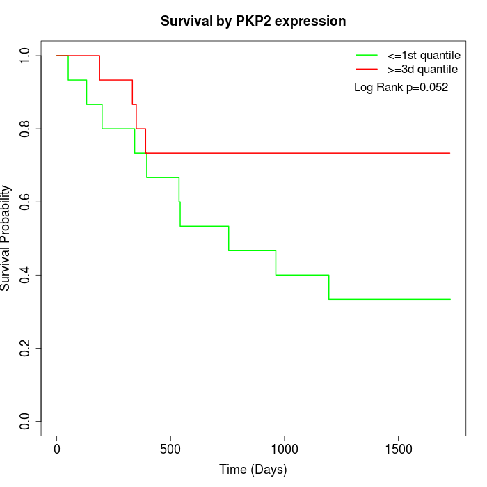 Survival by PKP2 expression:
