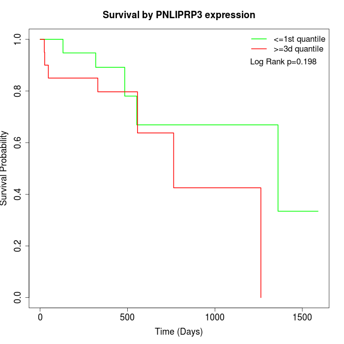 Survival by PNLIPRP3 expression: