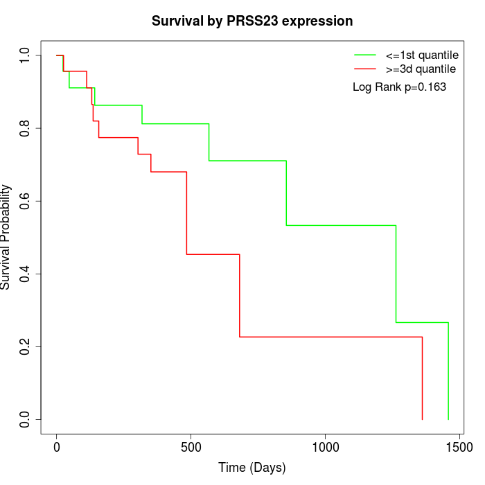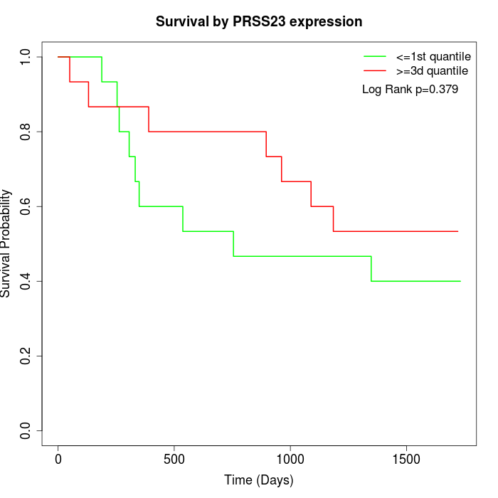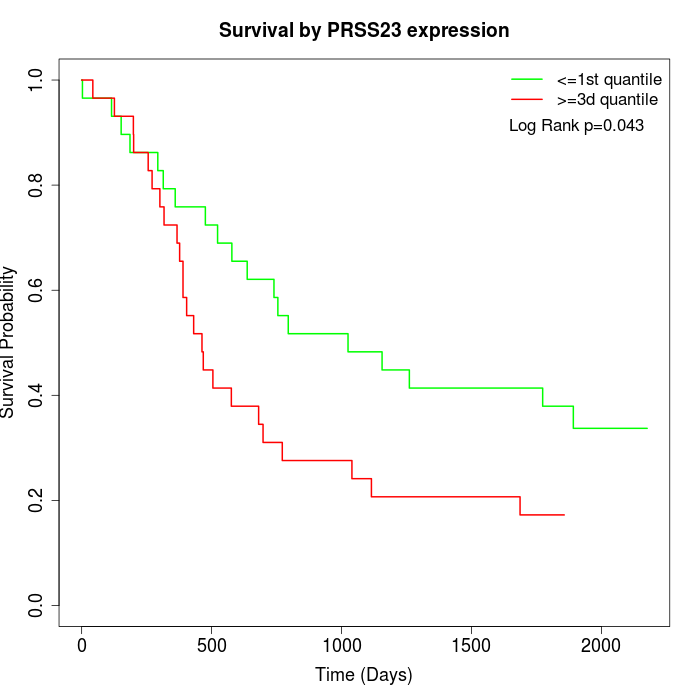 Survival by PRSS23 expression: