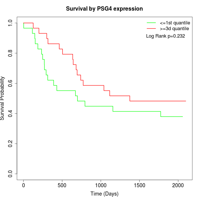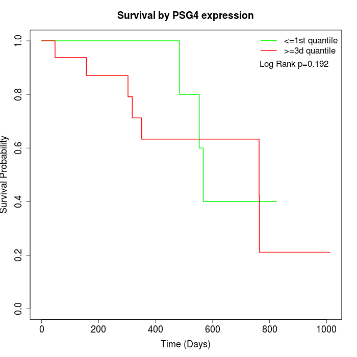 Survival by PSG4 expression: