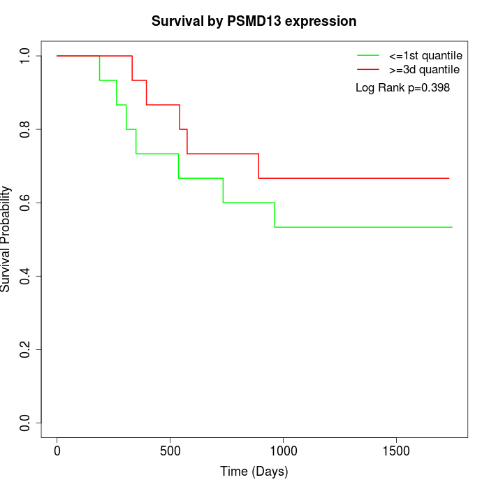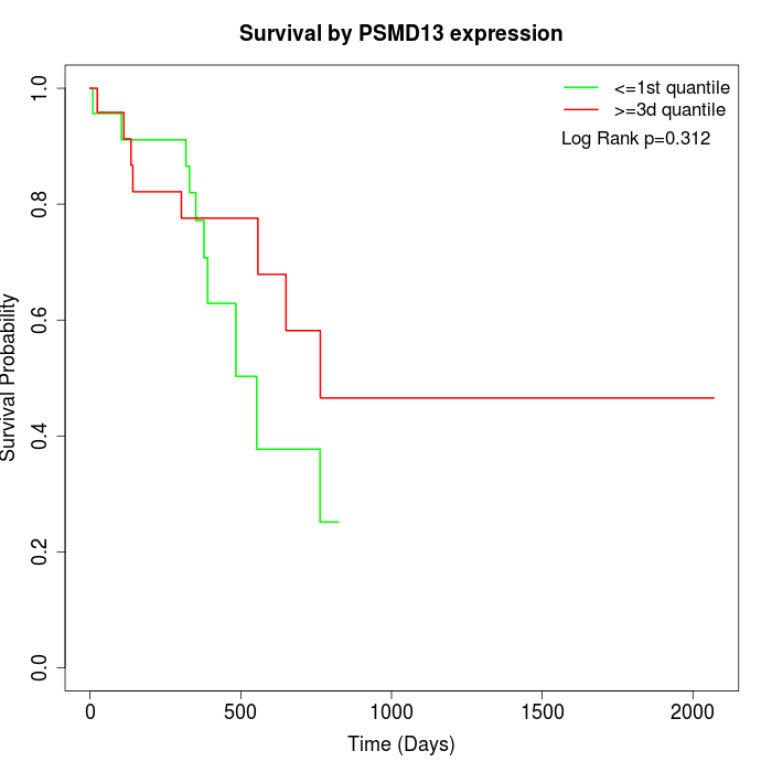 Survival by PSMD13 expression: