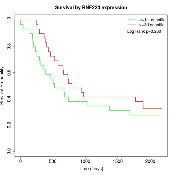 Survival by RNF224 expression:
