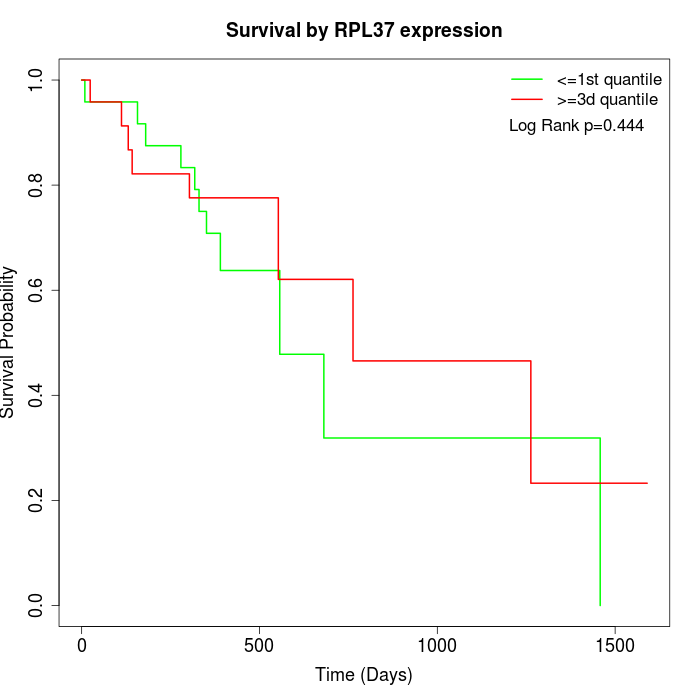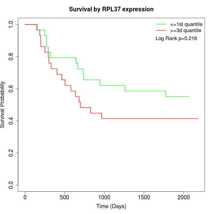 Survival by RPL37 expression: