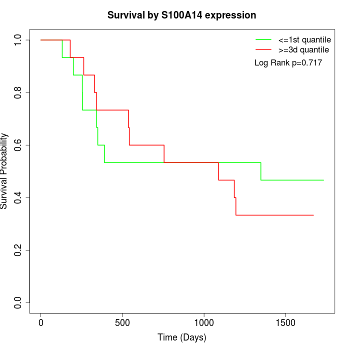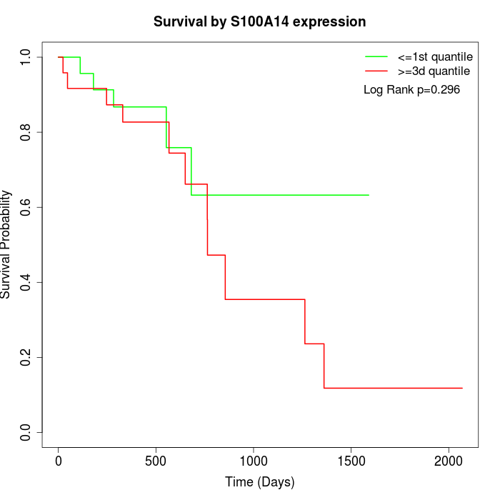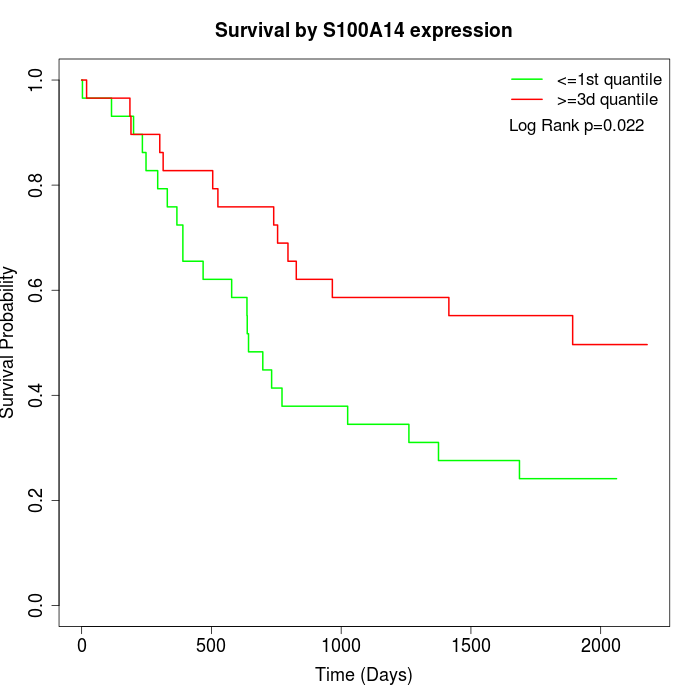 Survival by S100A14 expression: