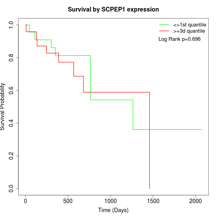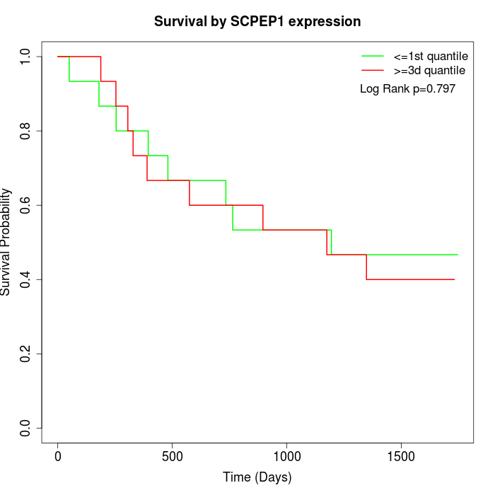 Survival by SCPEP1 expression: