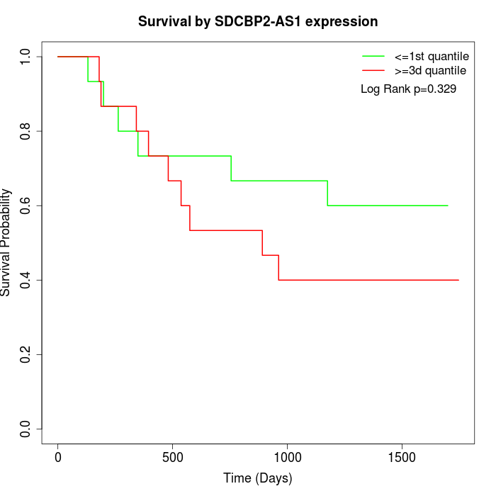 Survival by SDCBP2-AS1 expression:
