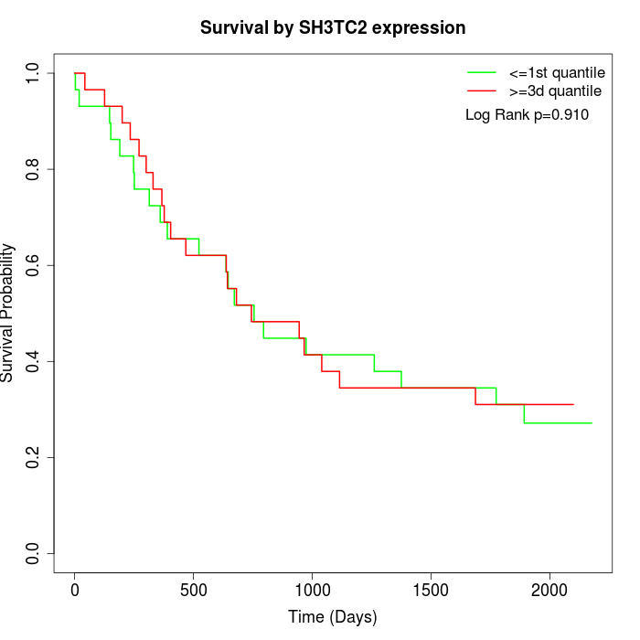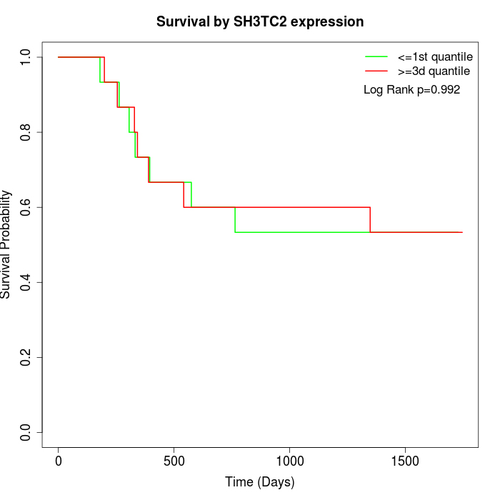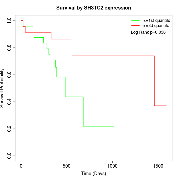 Survival by SH3TC2 expression: