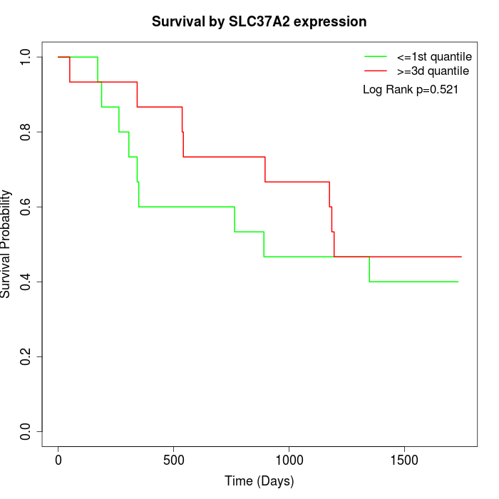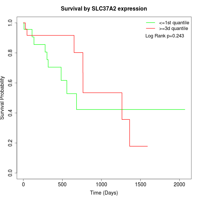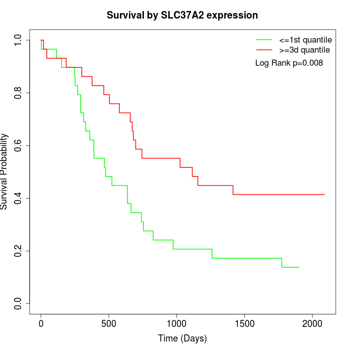 Survival by SLC37A2 expression: